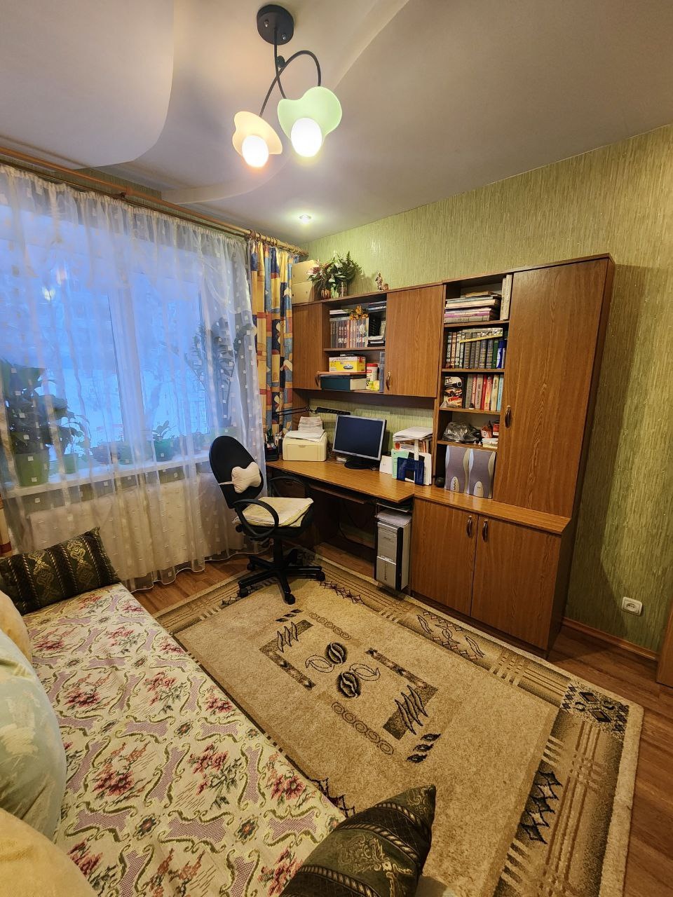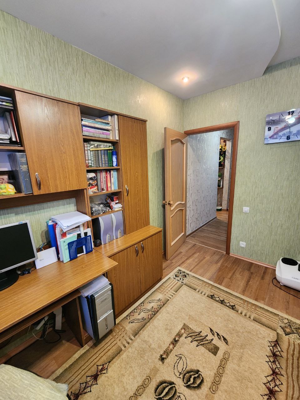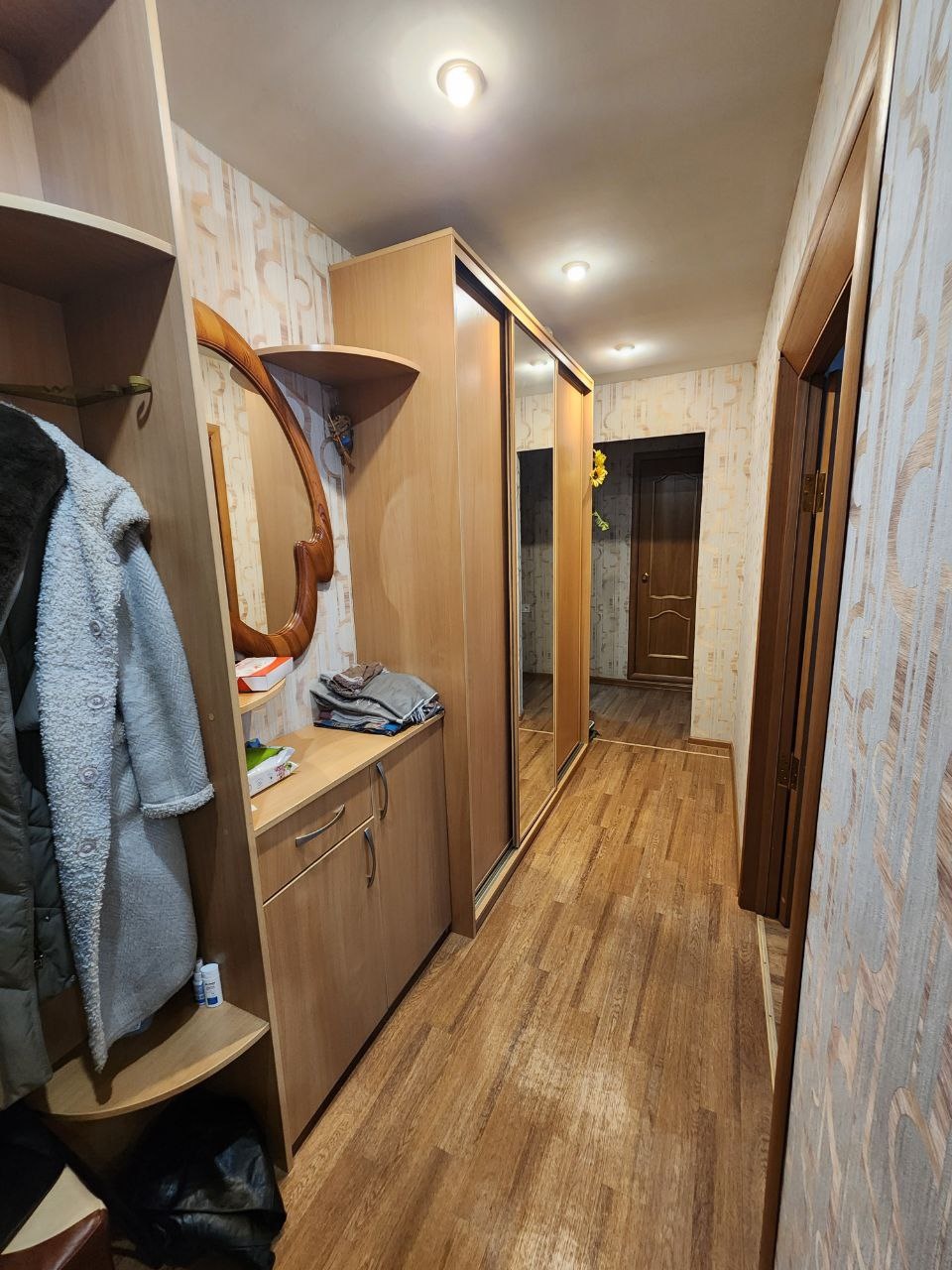 При продаже остается кухонный гарнитур, система хранения в коридоре, мебель в детской и водонагреватель на 100 литров.