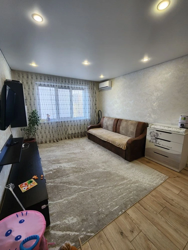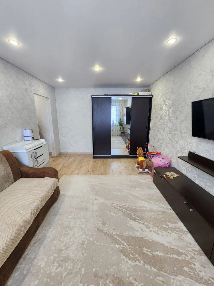 Продается 1-комнатная квартира площадью 37,2 кв.м (плюс лоджия 3 кв.м) на 9 этаже 10-этажного доме 2018 года постройки в п. Солнечный.
