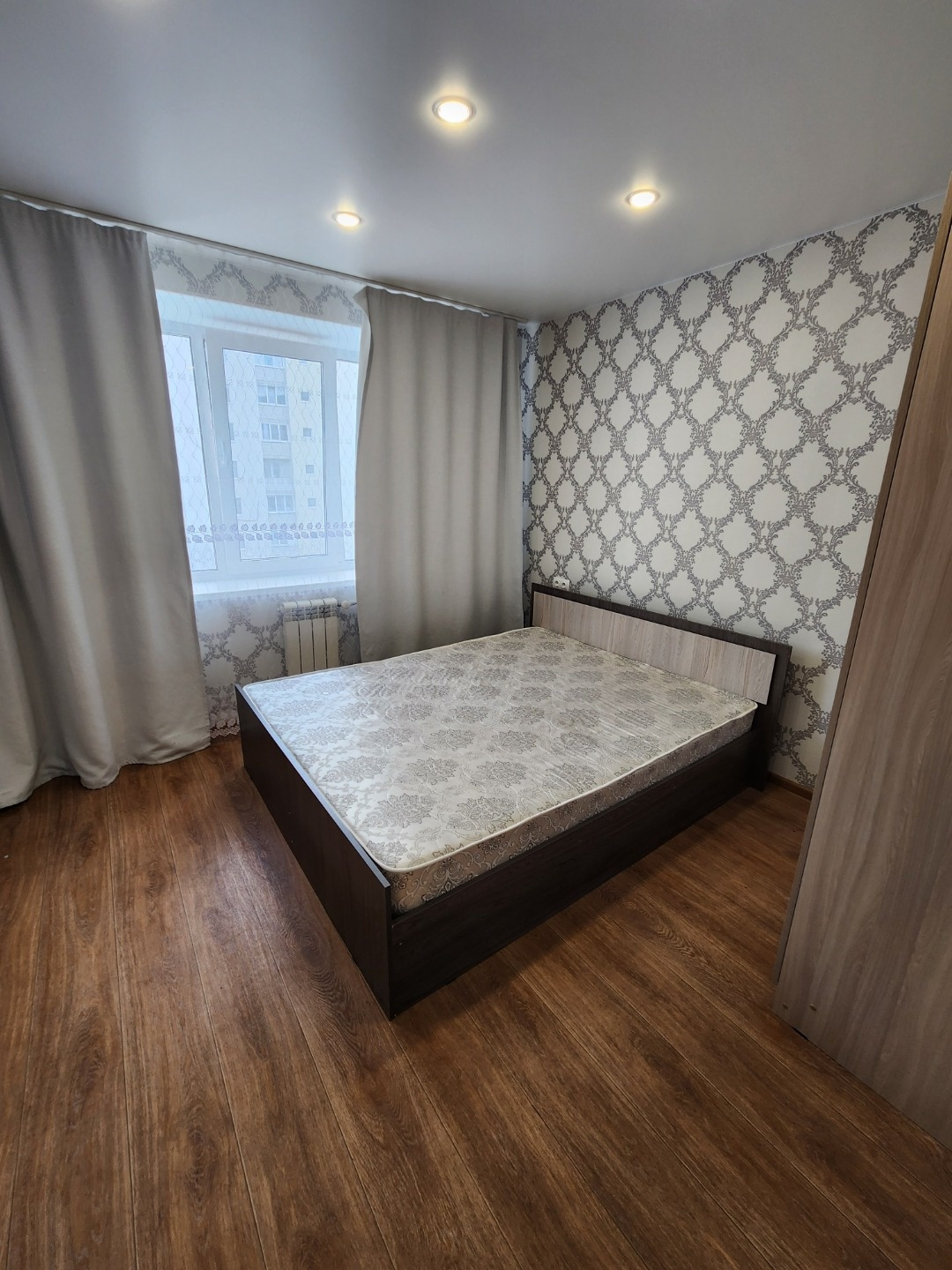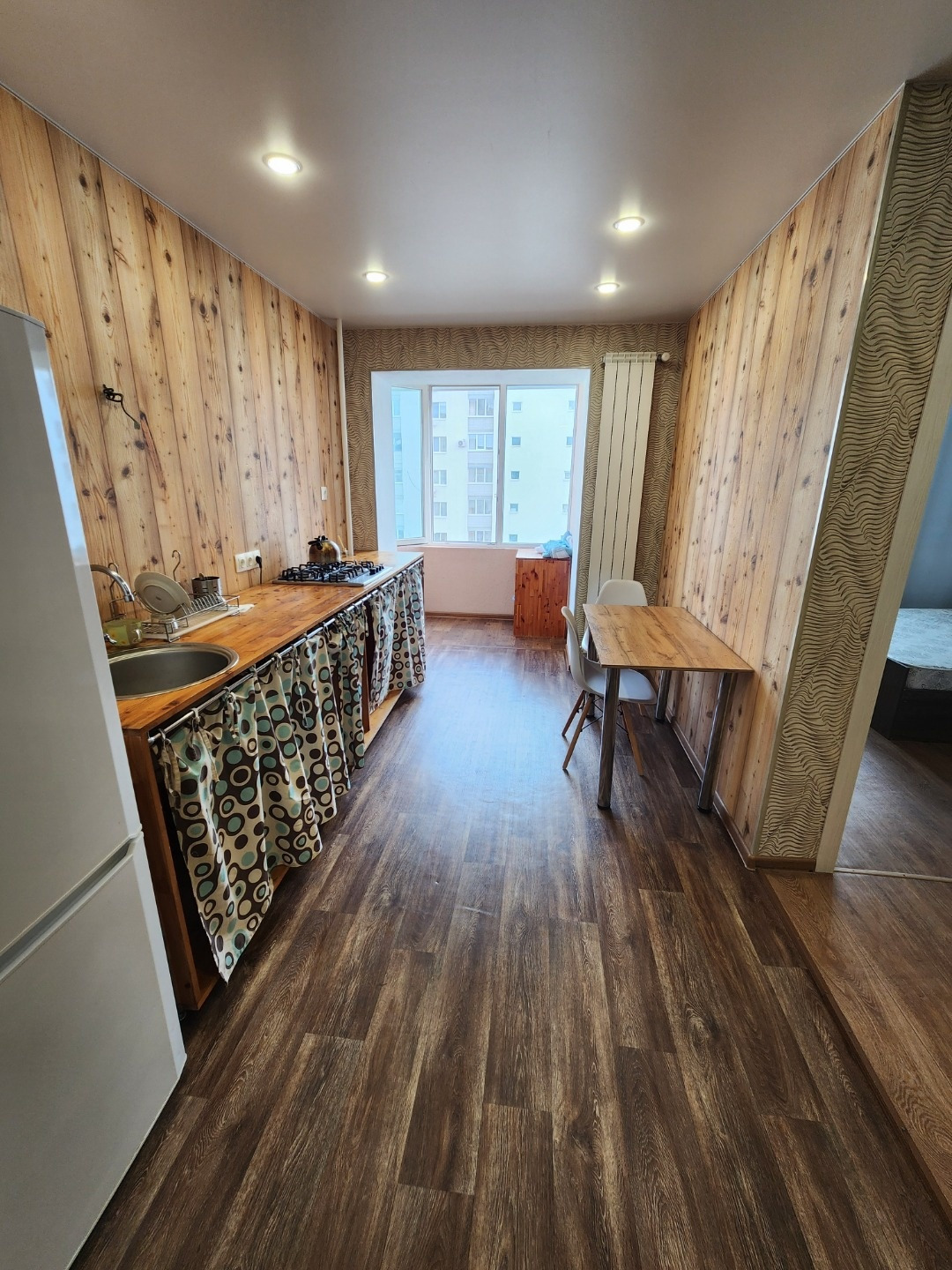 Квартира с индивидуальной планировкой: есть отдельная спальня и большая кухня-гостиная, совмещенный большой санузел, лоджия присоединена и утеплена.