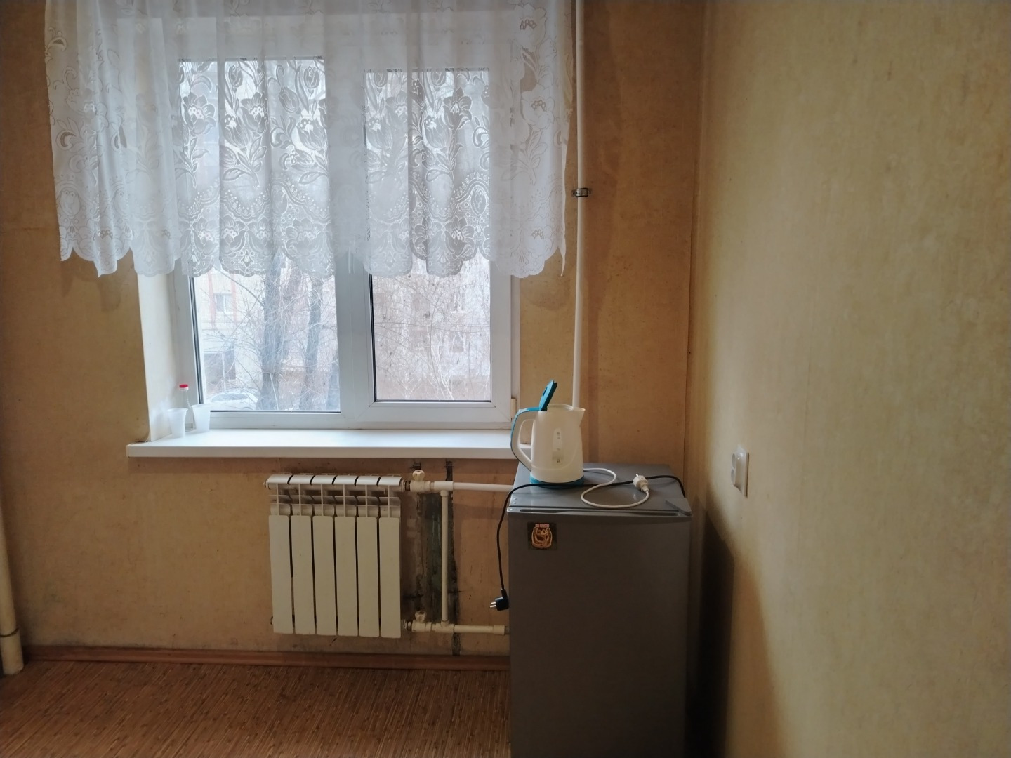 Площадь 31 кв.м,квартира угловая,но очень теплая и светлая,дополнительным бонусом идет два окна в комнате.