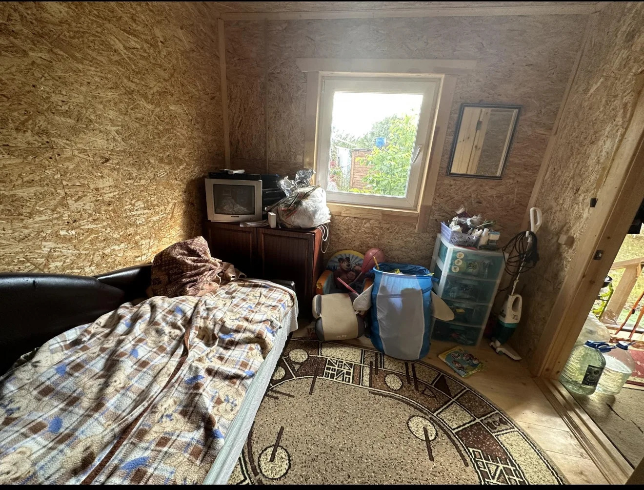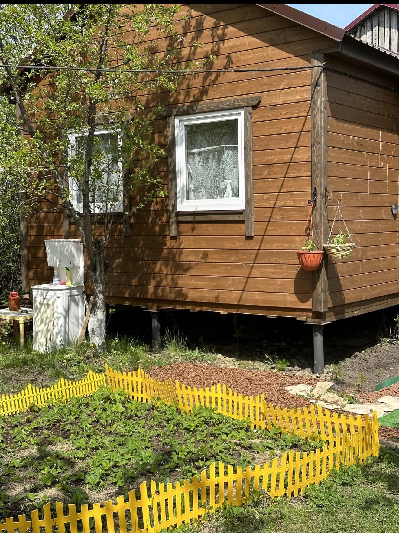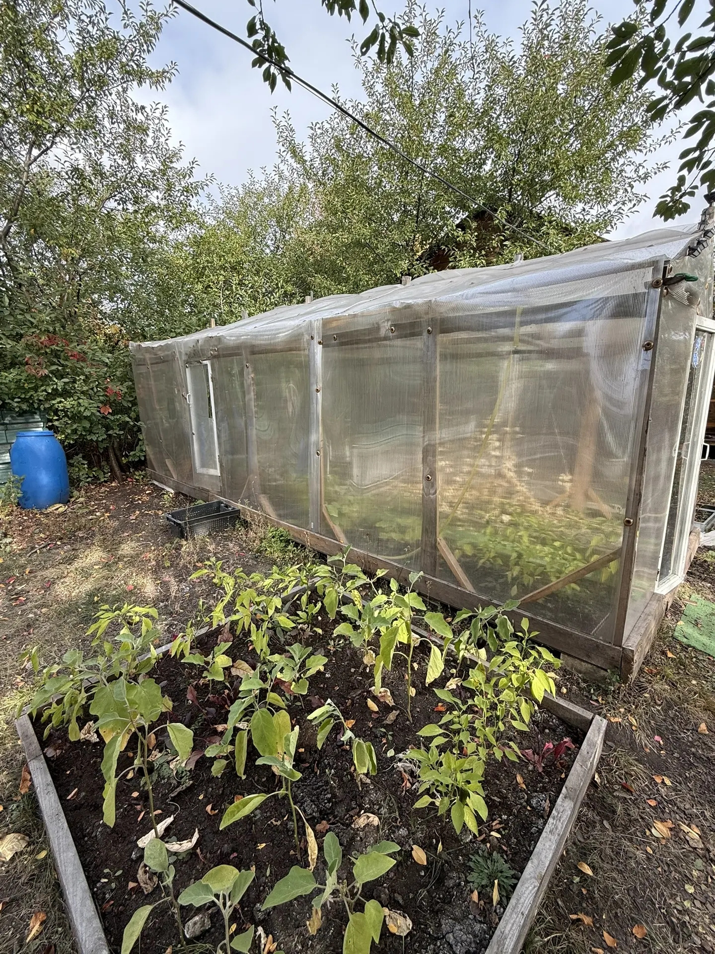 Новый каркасный дом 4*6м с верандой 2*6м+старый жилой дом из которого планировали сделать летную кухню, хозблок 2*4м, баня 2*3м с верандой тоже 2*3м, теплицей 6*1,5м. На участке слива, вишня малина, яблоня, груша, марель, клубника, смородина , крыжовник, цветы.