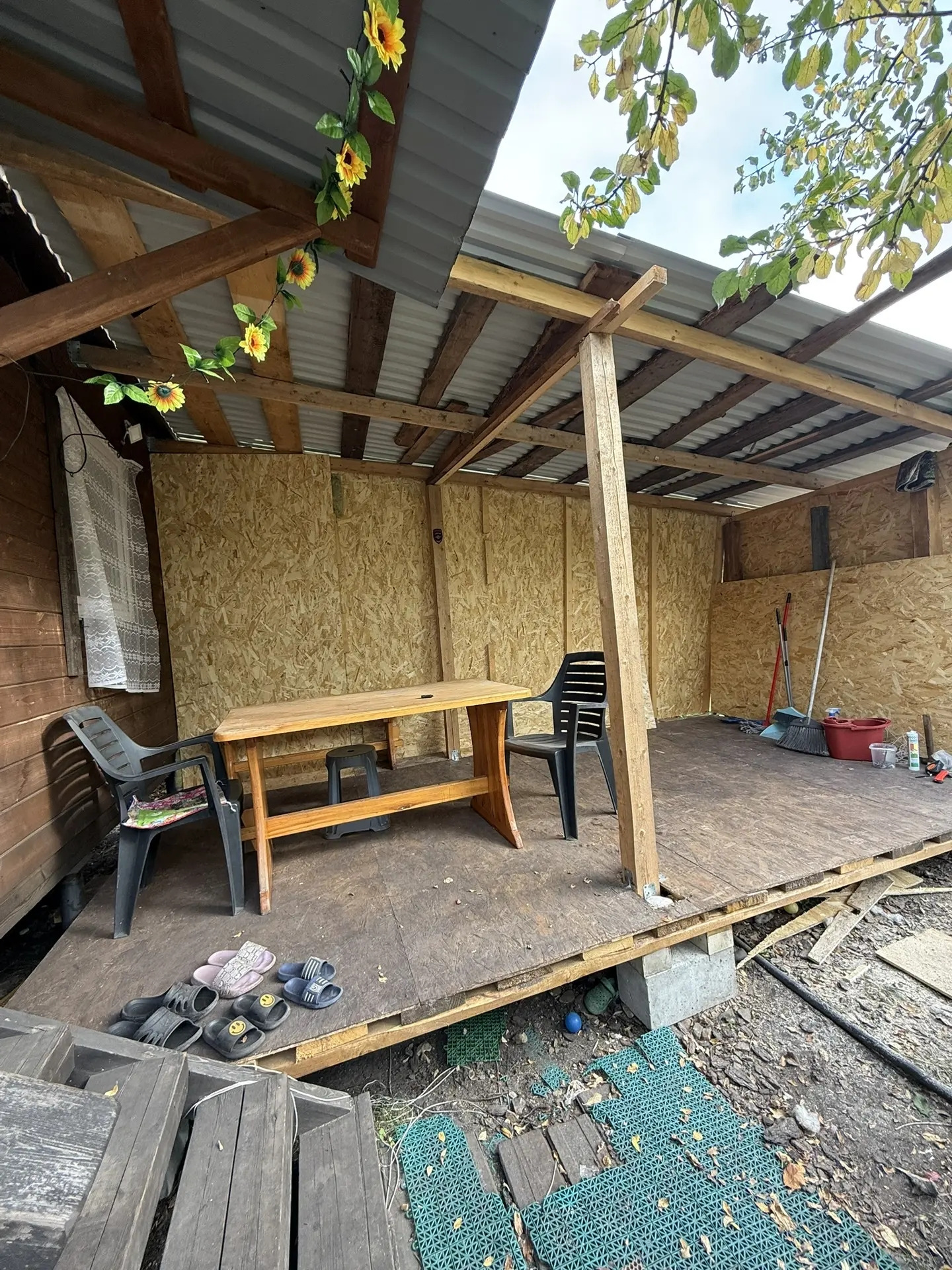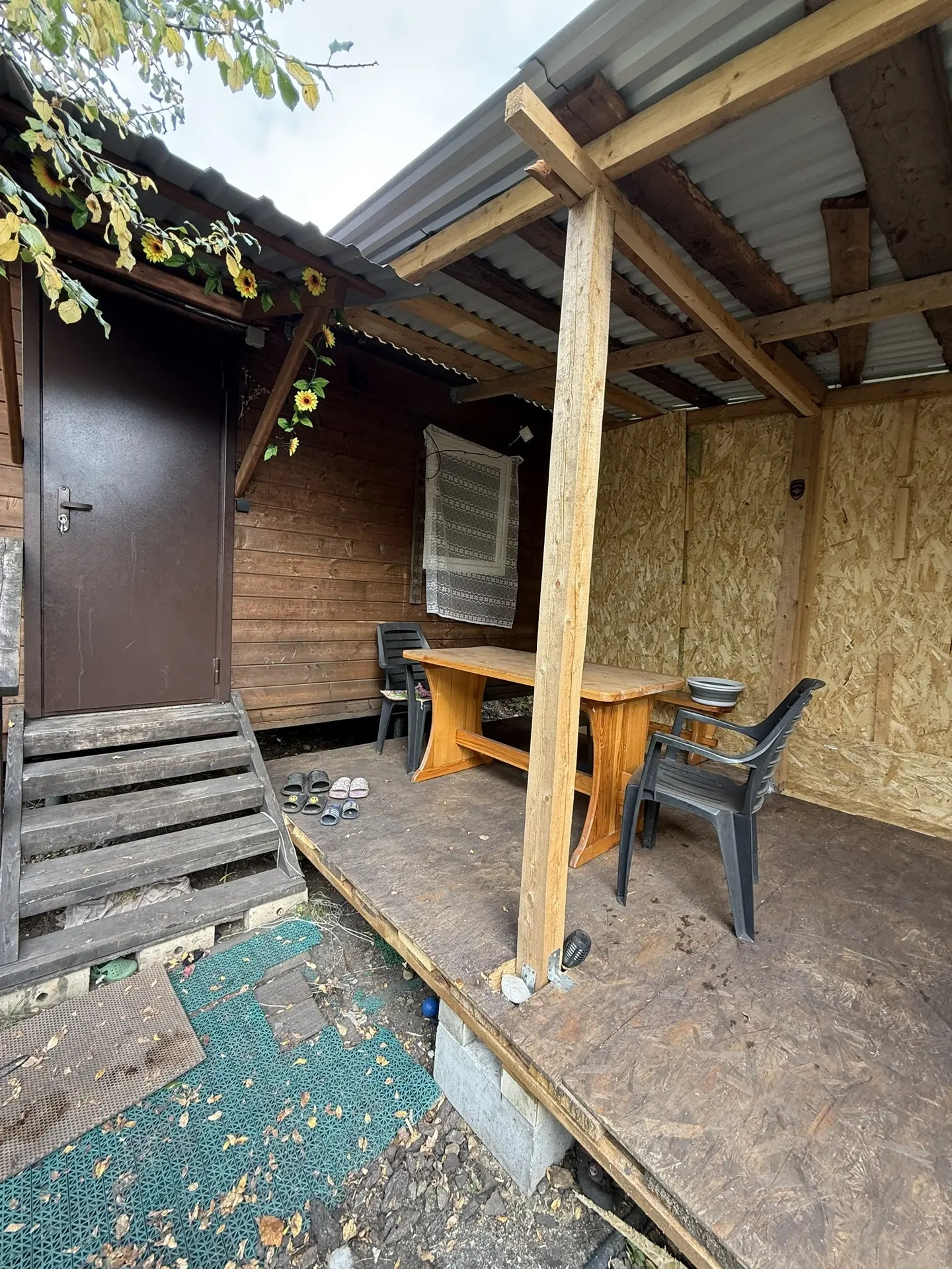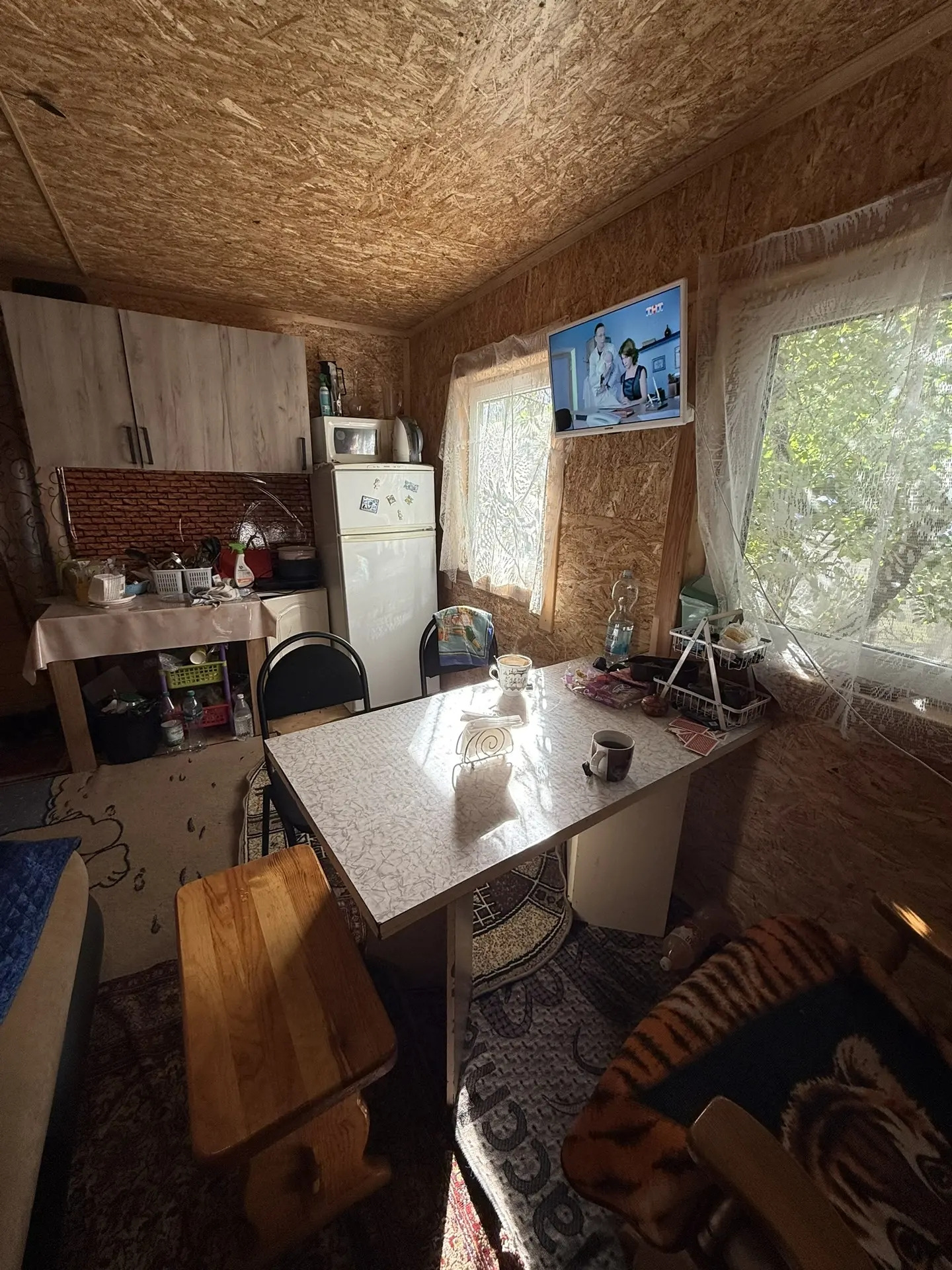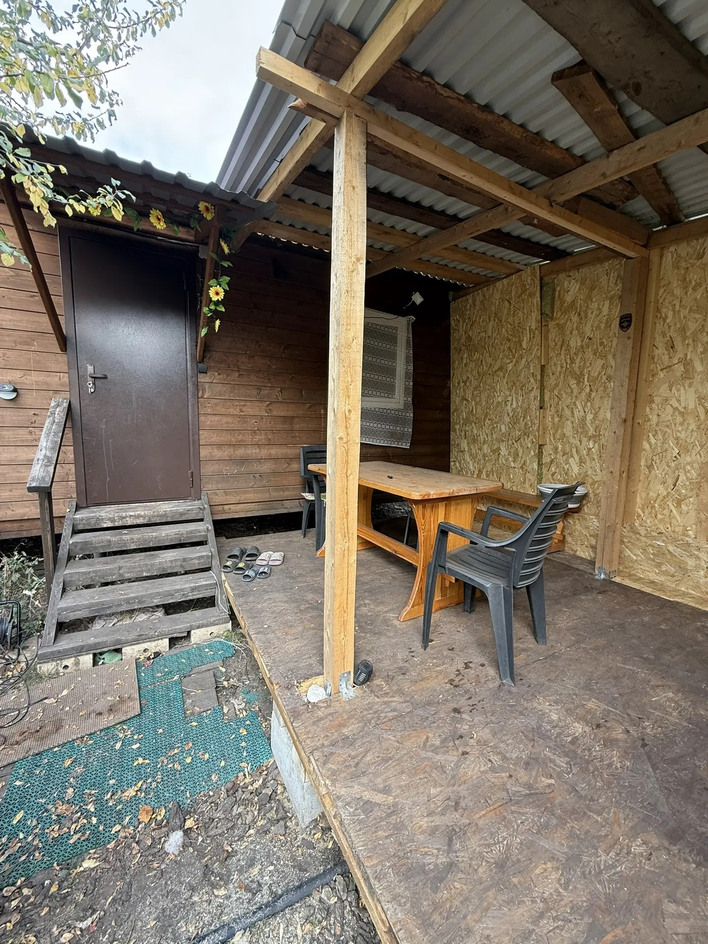 Новый каркасный дом 4*6м с верандой 2*6м+старый жилой дом из которого планировали сделать летную кухню, хозблок 2*4м, баня 2*3м с верандой тоже 2*3м, теплицей 6*1,5м. На участке слива, вишня малина, яблоня, груша, марель, клубника, смородина , крыжовник, цветы.